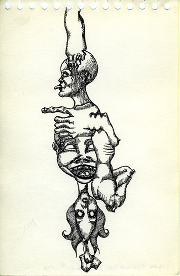 Rapidograph and/or pencil on paper, each 8½ x 5½" (21.5 x 14 cm). Detail: #11 of 35, India ink and