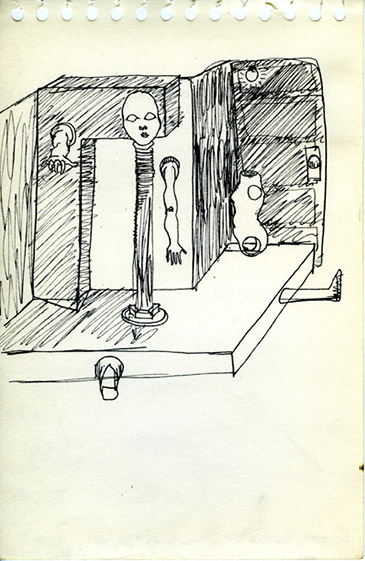 Rapidograph and/or pencil on paper, each 8½ x 5½" (21.5 x 14 cm). Detail: #29 of 35, India ink and