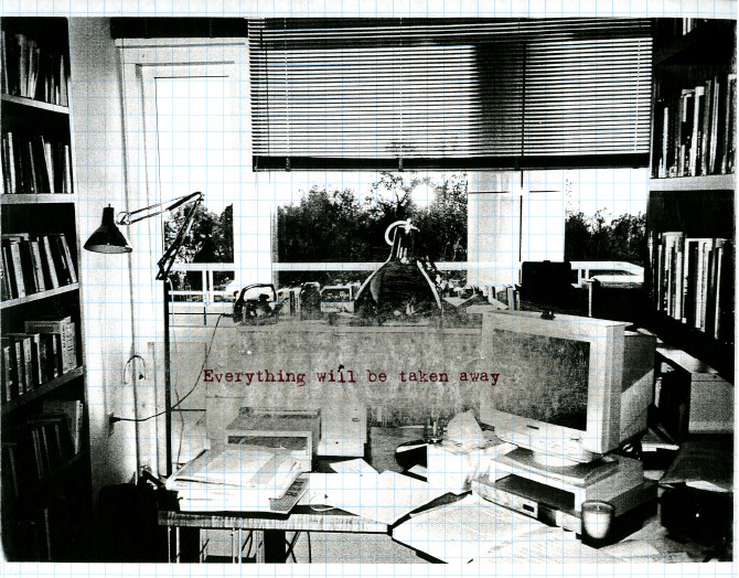 2003. Graph paper overprinted with black and white photocopied and sanded photograph, dark red inkjet text. 11 x 8½" (27.9 x 21.6 cm). # 03001.7. Private Collection. © Adrian Piper Research Archive Foundation Berlin.