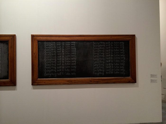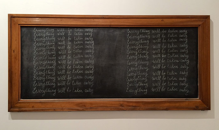 orientation and covered with single handwritten sentence repeated 25 times in white chalk