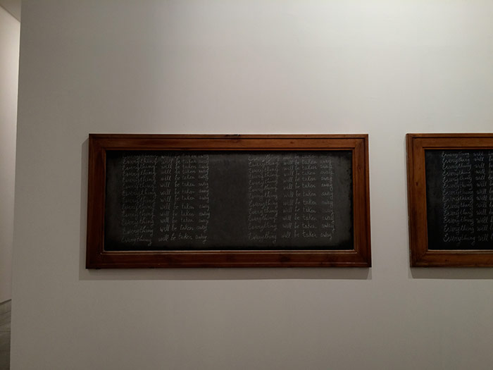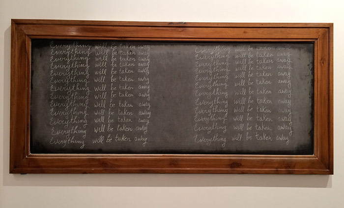 orientation and covered with single handwritten sentence repeated 25 times in white chalk