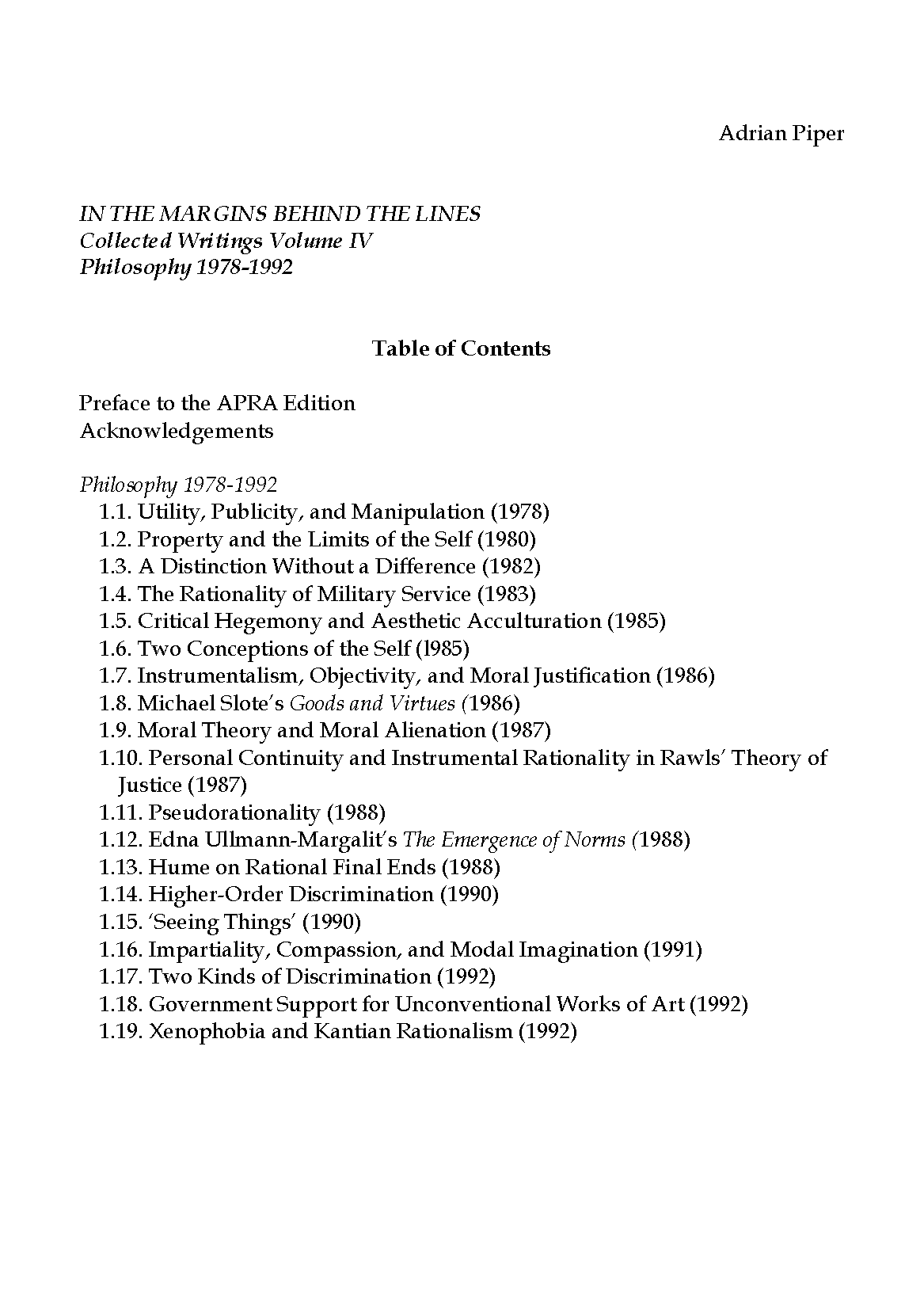 Philosophy 1978-1992